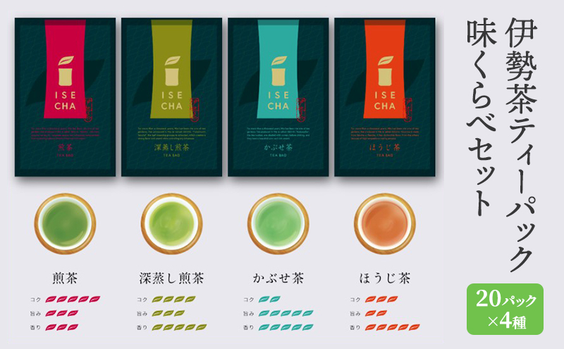 伊勢茶ティーバッグ味くらべセット 20パック×4種 [ お茶 煎茶 深蒸し煎茶 深蒸し茶 かぶせ茶 ほうじ茶 飲み比べ 本格 簡単 ]