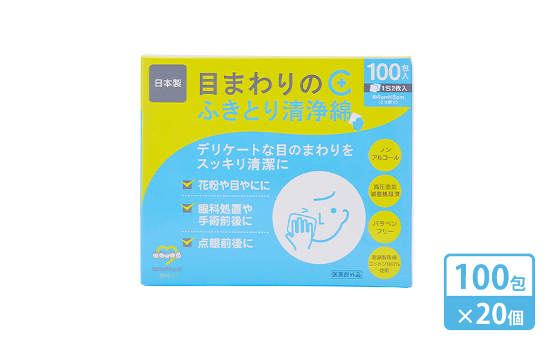 【 ノンアルコール 】 目まわりのふきとり清浄綿 100包 × 20個 ( 1ケース ) [ 目 ふきとり ふき取り 清浄綿 個包装 天然 コットン 医薬部外品 滅菌 乳児 幼児 赤ちゃん ベビー 介護 授乳 日本製 三重県 津市 ]