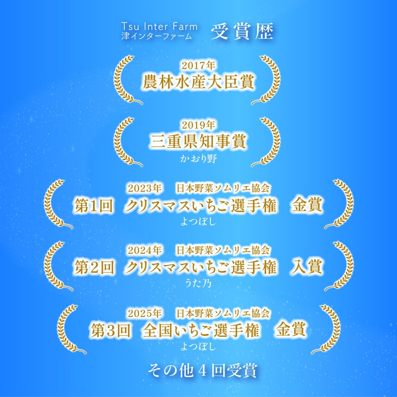 数々の受賞歴のあるファームだからこそここまでの品質のいちごをお届けできます。