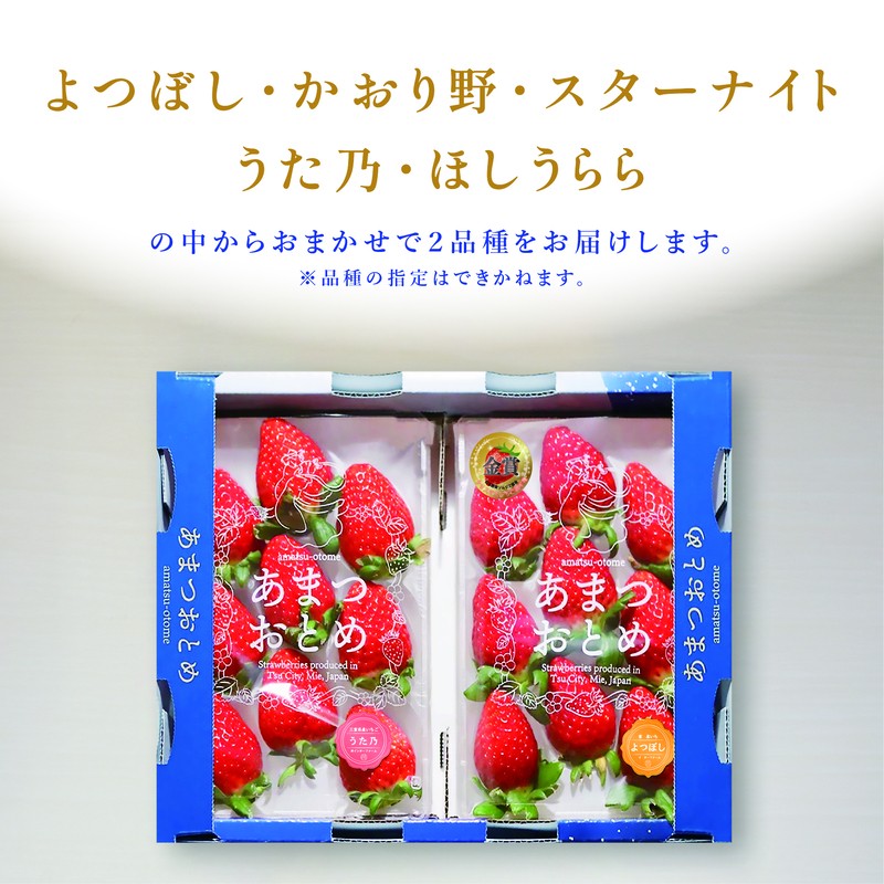 「よつぼし」「かおり野」「スターナイト」「うた乃」「ほしうらら」の中からおまかせで2品種をお届けいたします。