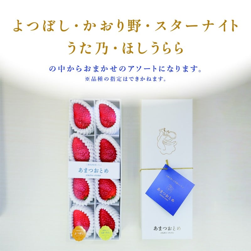 あまつおとめ いちご アソート ギフト BOX 1箱 8粒入り 250g [ 五感で楽しむ至福のいちご よつぼし かおり野 スターナイト うた乃 ほしうらら 果物 フルーツ 苺 イチゴ ブランド 食べ比べ セット 詰め合わせ お楽しみ 人気 ]