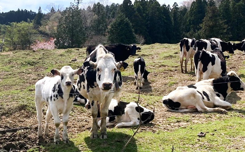 夏季は山に自生する植物、冬季は河川敷の野草を発酵保存して餌にしています。周年完全放牧、完全自給飼料、抗生物質やホルモン剤の類は使用していません。製造には三重県沖の離島「神島」の塩(マイクロプラスチック未検出)を使用しています。