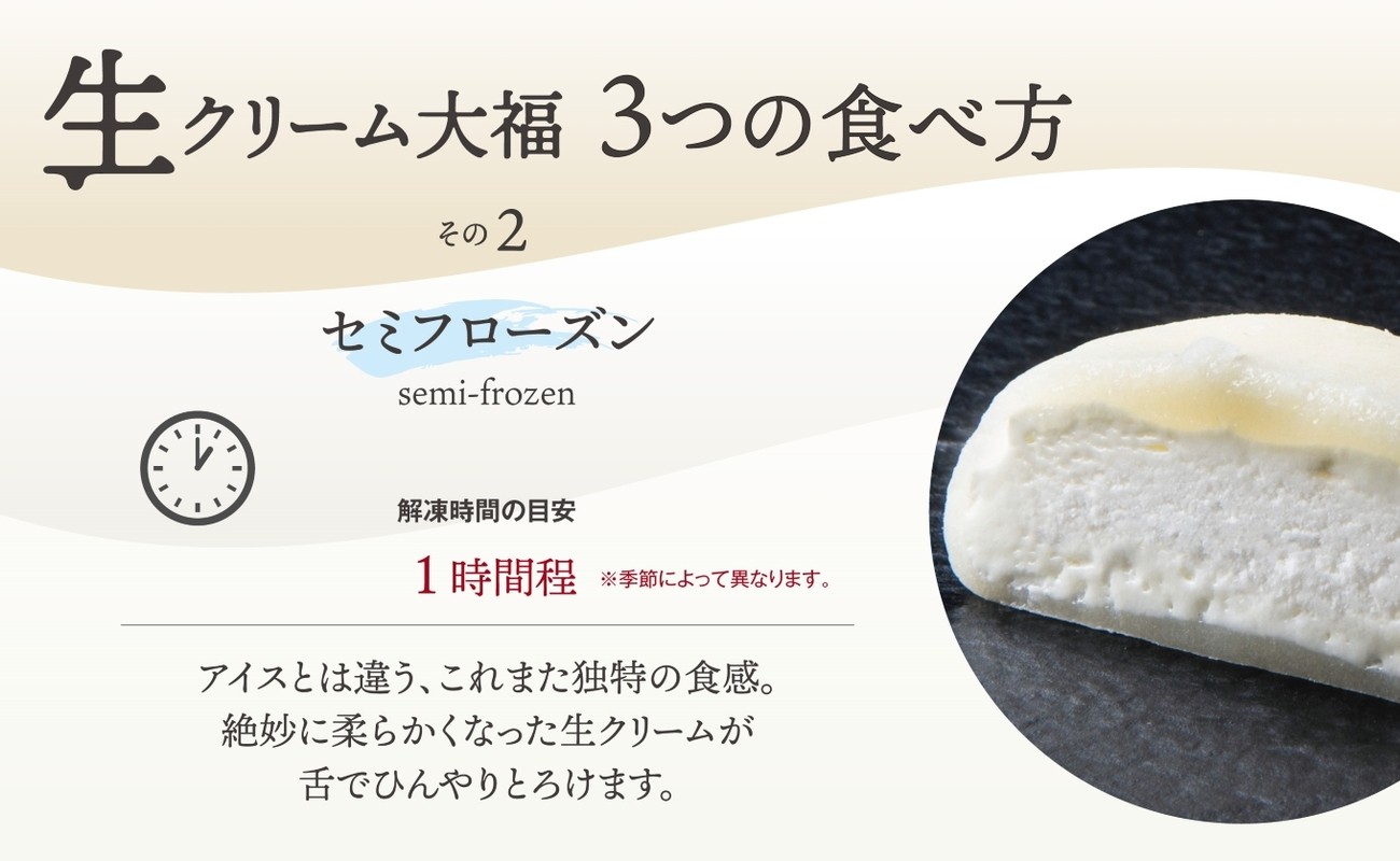 生クリームの本来の味わいや皮の部分のもちもち感や、解凍時間を変えることで微妙な美味しさの違いをお楽しみいただけたらと思っています。