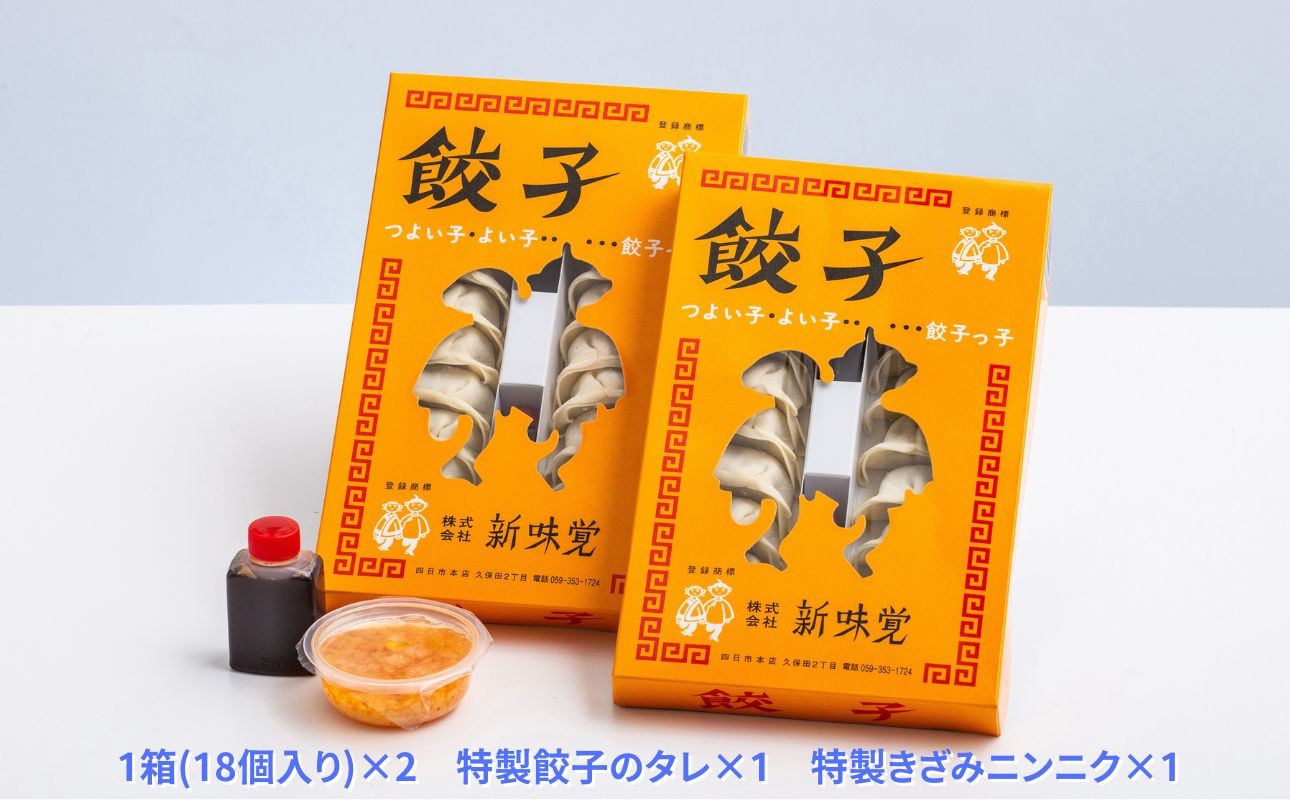 | 容量 | 餃子2箱(1箱18個入り)特製餃子タレ1個 特製刻みにんにく1個 2回発送 ※最初の発送日から約2ヶ月後に発送します |