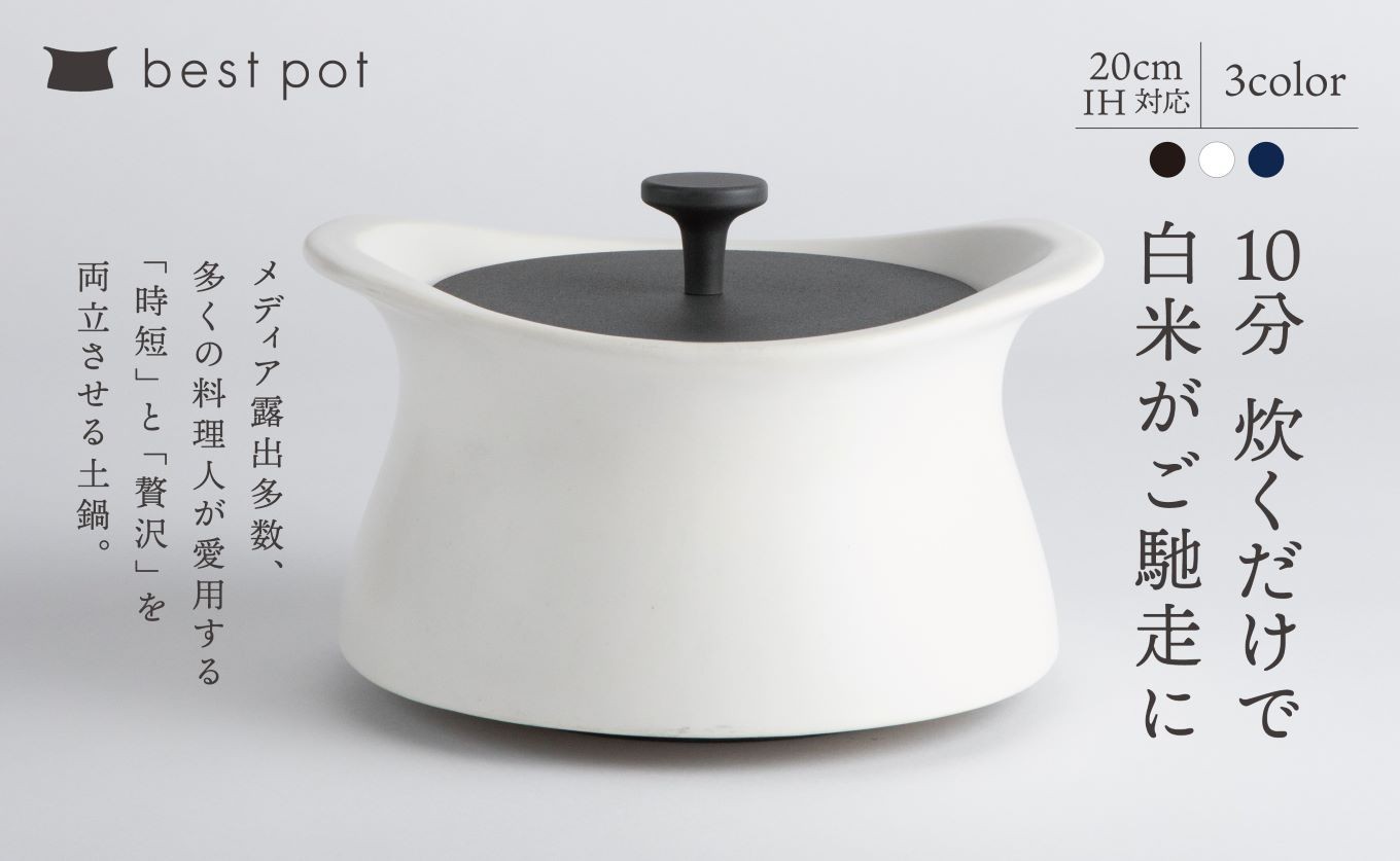 メディア露出多数、最近も人気番組で紹介!料理人愛用、「時短と贅沢」が両立する土鍋 best pot(ベストポット) IH対応(20cm)ホワイト