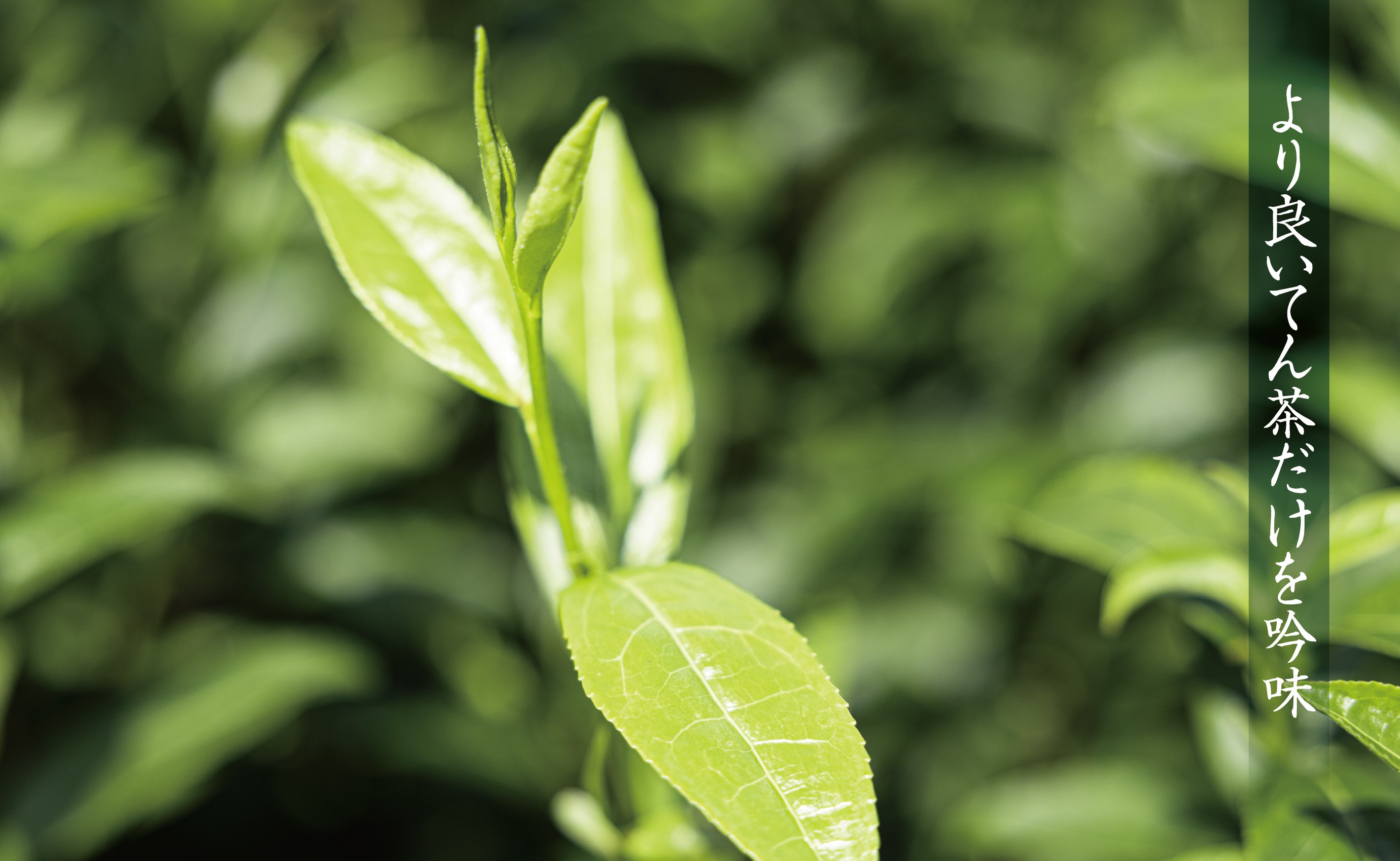 ここで育ったお茶は、綺麗な緑色が特徴で、流れる水が綺麗だからこそ、綺麗な翠(みどり)色のお茶が作れます。所有する茶畑のなかでも最も条件のよい茶畑で育った茶葉から、さらに一番良い茶葉を職人が一つ一つ選りすぐり、最上のてん茶にします。