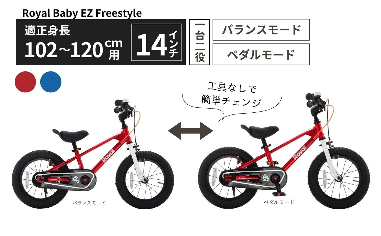 バランスバイクから自転車へ簡単切替。成長に寄り添う、一台二役のキッズバイク 子供用自転車 14インチ バランスバイク 2WAY Royal Baby EZ Freestyle ペダル着脱式 2~5歳 102~120cm キッズ自転車 トレーニングバイク 一台二役 選べる2カラー プレゼント ギフト|武田産業 人気返礼品 三重県 四日市市 ふるさと納税