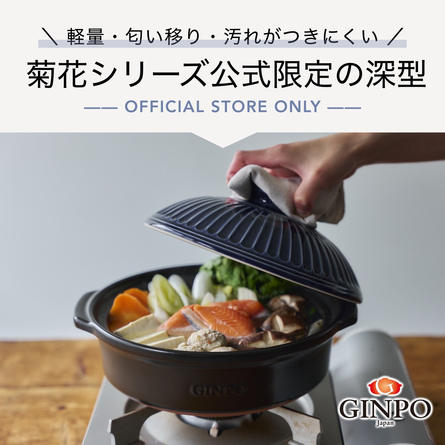 夫婦やカップルにおすすめな2人用。 現代人の暮らしにマッチする次世代の土鍋が菊花です。 土鍋の特徴である、蓄熱性をそのままに、従来の花三島と比べて15%の軽量化に成功。 取り扱いが楽になり、できたての温かい料理をテーブルの上でお楽しみいただけます。 黒色の胴部分は、臭いや汚れのトラブルを防ぐオリジナルの釉薬を使用。 鍋料理はもちろん、スープカレーやチーズフォンデュなど様々なお料理をお楽しみいただけます。 ※この製品は釉薬の濃淡を風合いとしています。多少のむらが生じることがありますのでご了承ください。 カラー:瑠璃・飴・粉引・紅梅 炊飯適量目安:1合~1.5合 サイズ:幅24cm×口径22cm×高さ12.5cm 容量:1.1リットル(2人前) 重さ:1,400g 対応熱源:直火、オーブン、ラジエントヒーター、レンジ 生産:銀峯陶器株式会社 事業者:株式会社G.M.P