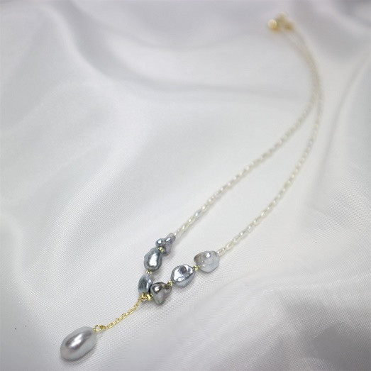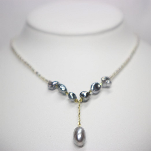 伊勢志摩産あこや貝から生まれた養殖ではない天然真珠であるケシパールを使用しネック部分を組み上げ、トップに、発色の美しい黒蝶ケシパールをあしらった世界に一点だけのデザインネックレスです。