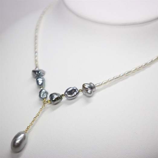 チョイス限定 968 K18アコヤケシパール&黒蝶ケシパールデザインネックレス 真珠 パール アコヤ真珠 ケシ真珠 ケシパール 天然真珠 宝石 アクセサリー ジュエリー ネックレス 冠婚葬祭 結婚式 フォーマル 伊勢市 伊勢志摩