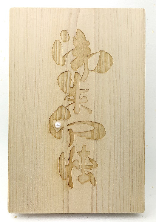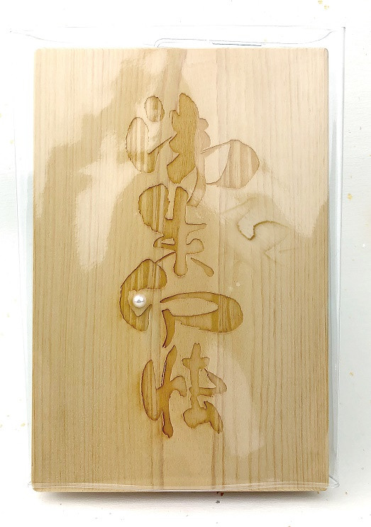 | 容量 | サイズ:縦約18.5cm×横約12.5cm×高さ約1.8cm 重量:約200g 表紙・裏表紙は伊勢の檜、中は和紙 ページ数 じゃばら折り・裏表合わせて48ページ(表紙裏含む) 直径約5mmのアコヤパールが表についております。 |