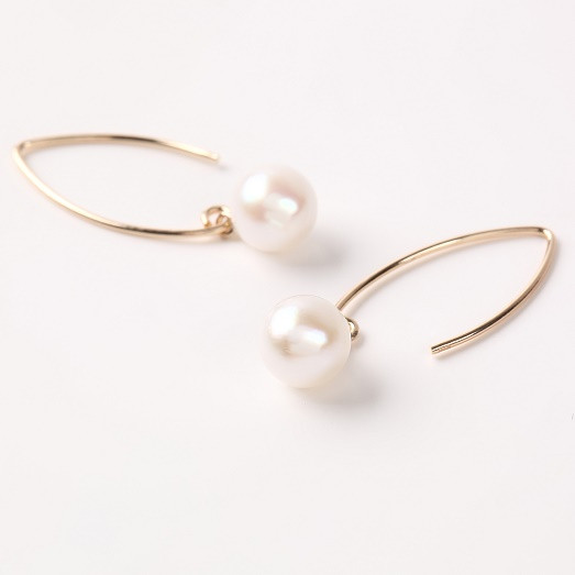 マーキス型のフックピアスにあこや真珠が揺れる可愛いピアスです。