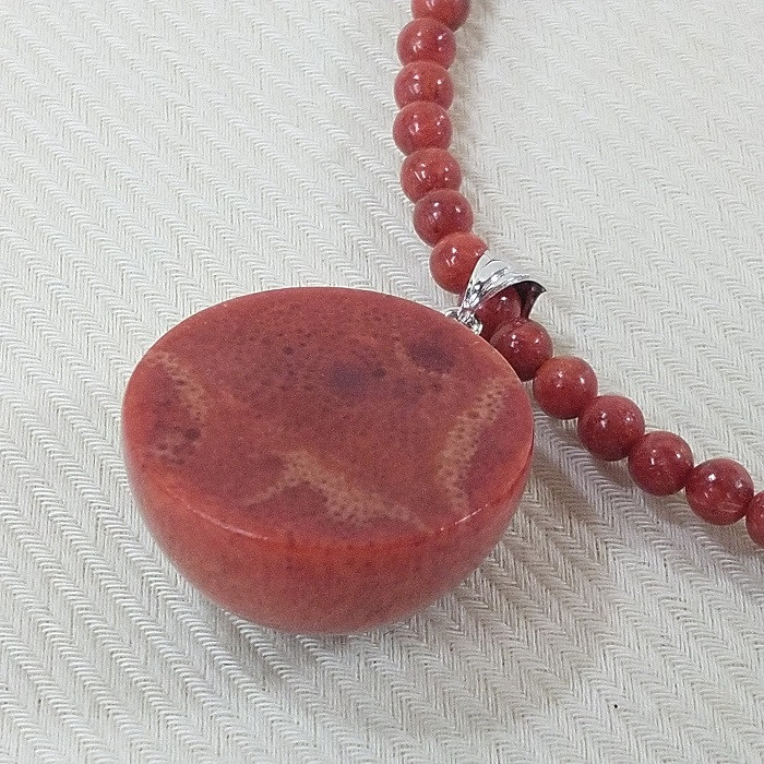 1061 珊瑚ネックレス・ドーム(珊瑚) アフリカ珊瑚 イソバナ珊瑚 珊瑚ネックレス ブラックスピネル 贈り物 還暦祝い 赤珊瑚 カジュアルアクセサリー ネックレス 珊瑚ペンダントトップ 3月誕生石 母の日 敬老の日プレゼント ご褒美アクセサリー リーズナブル装飾