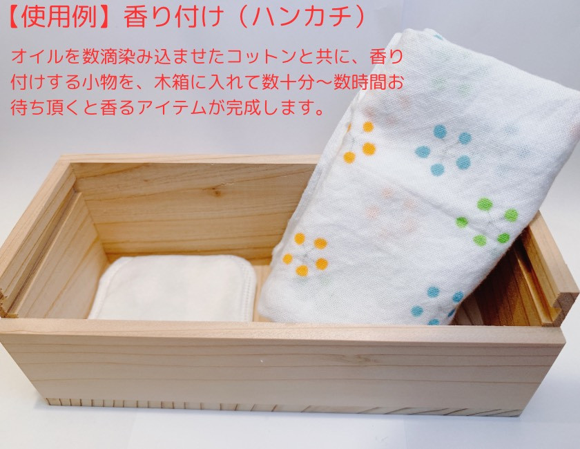 香りの分子は鼻や口から粘膜吸収により身体に取り込まれます。また嗅覚を通して脳に伝わり自律神経系-内分泌系-免疫系に作用します。私共はこの芳香メカニズムを「香りを食べる」と表現しました。芳香専用ブレンド精油に汎用されるアルコールは使用せずに精油100%でお作りしました。三重県産ひのき精油を配合しています。