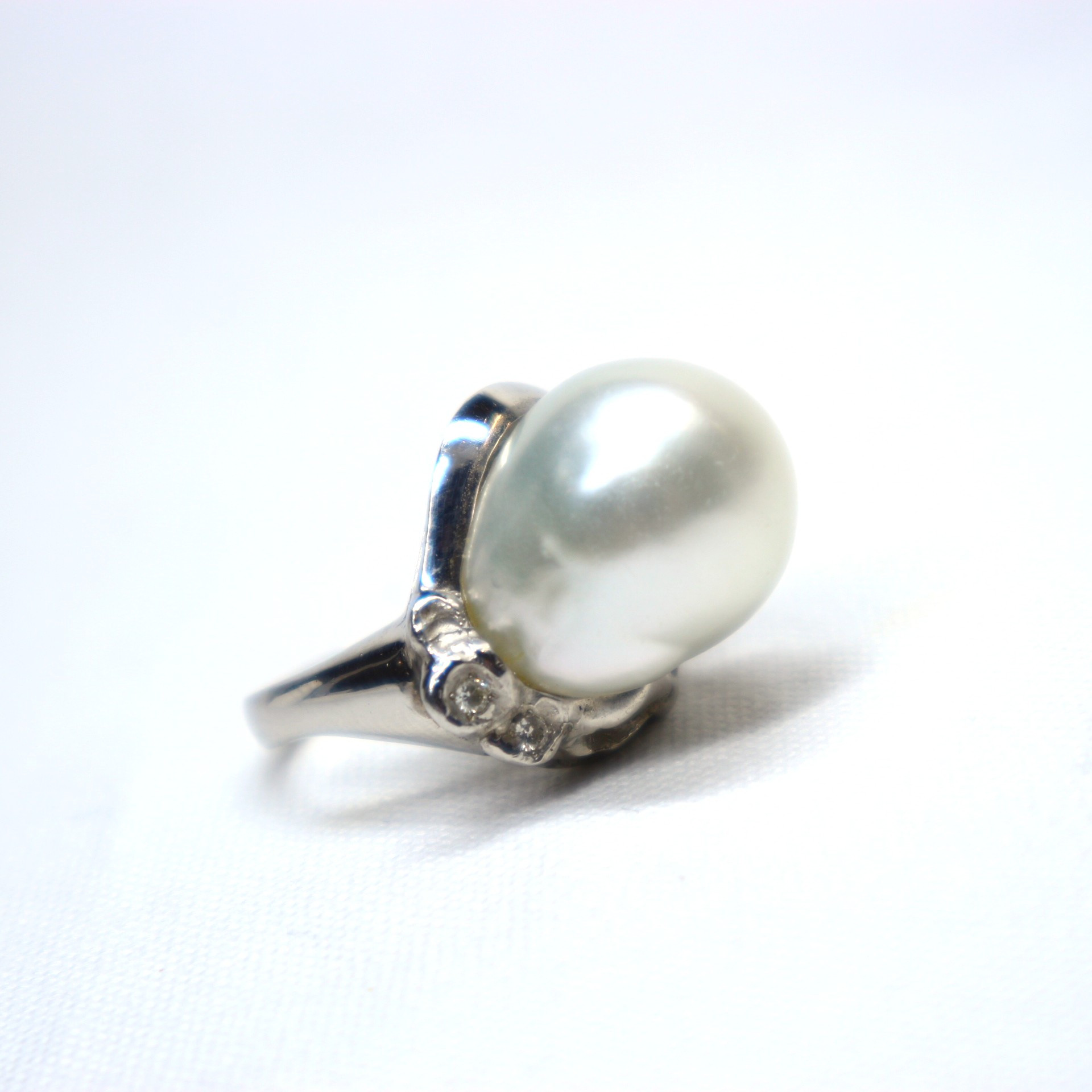 白蝶バロック真珠のカラーグラデーションをお楽しみいただけるように仕上げた優雅なデザインリング。ボリュームあるバロックパールにアクセントのダイヤモンドを加え、プラチナのデザインリングに仕上げました。