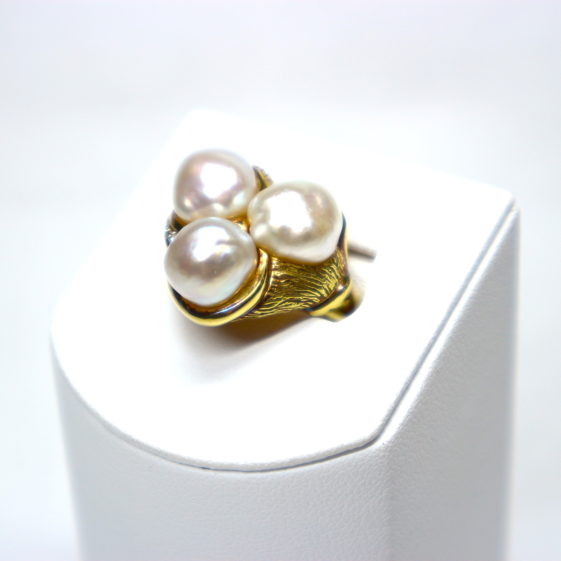 白蝶貝から産まれた天然ケシ真珠を使用した。K18ゴールドのデザインリング。