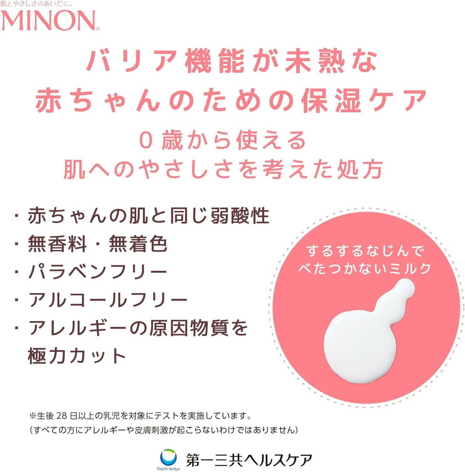 1743 ミノンベビー全身保湿ミルク4本、ミノン全身保湿クリーム1本 保湿 保湿クリーム ボディークリーム 敏感肌 ミノン 赤ちゃん 肌トラブル スキンケア 乾燥肌 無香料 無着色 低刺激性 弱酸性 アレルギー 日やけ 雪やけ