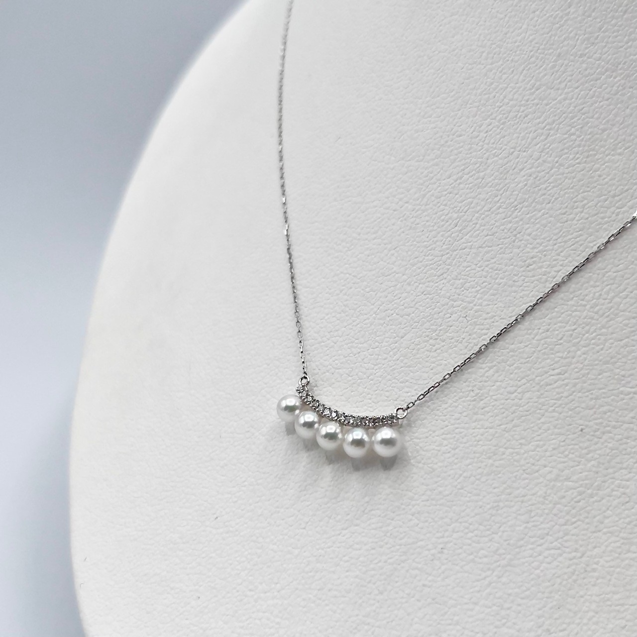 アコヤ真珠とダイヤモンドがデコルテで美しく輝くシンプルなペンダント。洗練された大人の印象に抜け感をプラス。
