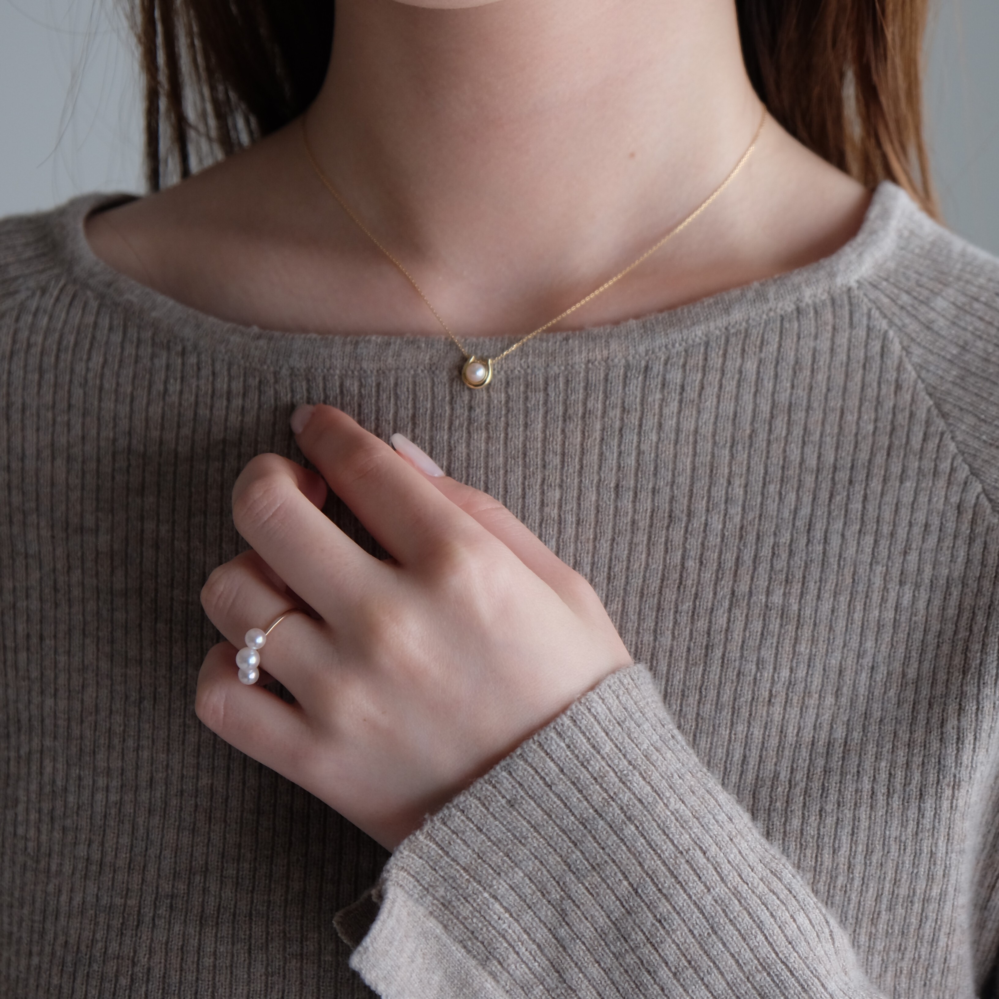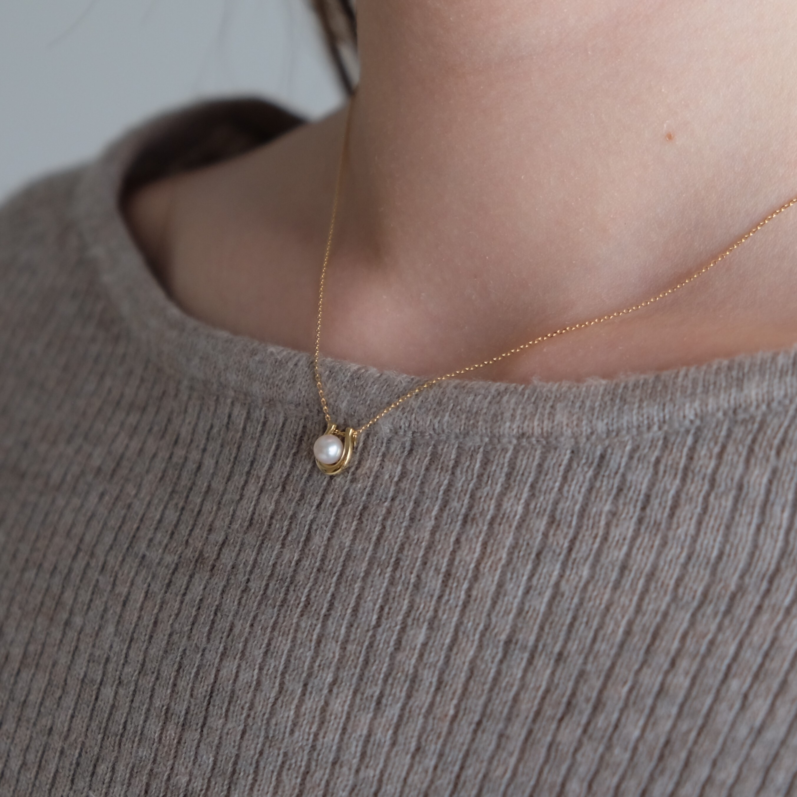 蹄鉄には幸運をもたらす意味と邪気を祓うと伝えられているアコヤ真珠がひとつとなった【MAMORI】お守りのようなジュエリーです。