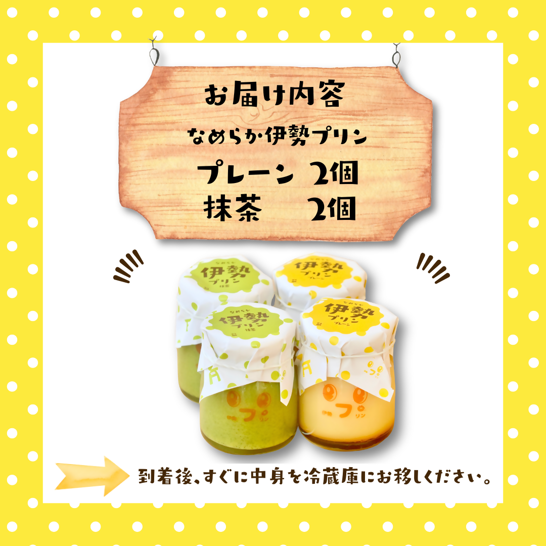 | 容量 | なめらか伊勢プリン 2個 (90mL×2個) なめらか伊勢プリン抹茶 2個 (90mL×2個) |