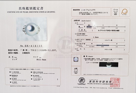 鑑別機関で一番有名な真珠科学研究所のオーロラフェニックス鑑別書がついていますので品質は問題なし