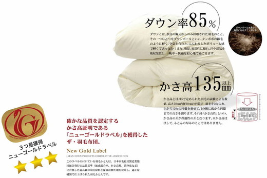 こちらのページでお申し込みできる「ザ・羽毛布団」は、3つ星獲得の「ニューゴールドラベル」認定です。