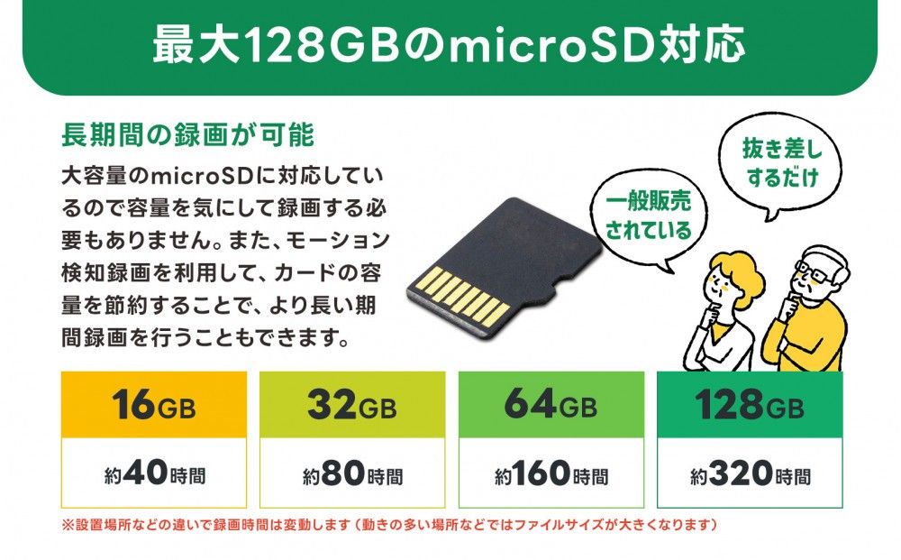 ●録画:16GB ~ 128GB MicroSDカード
