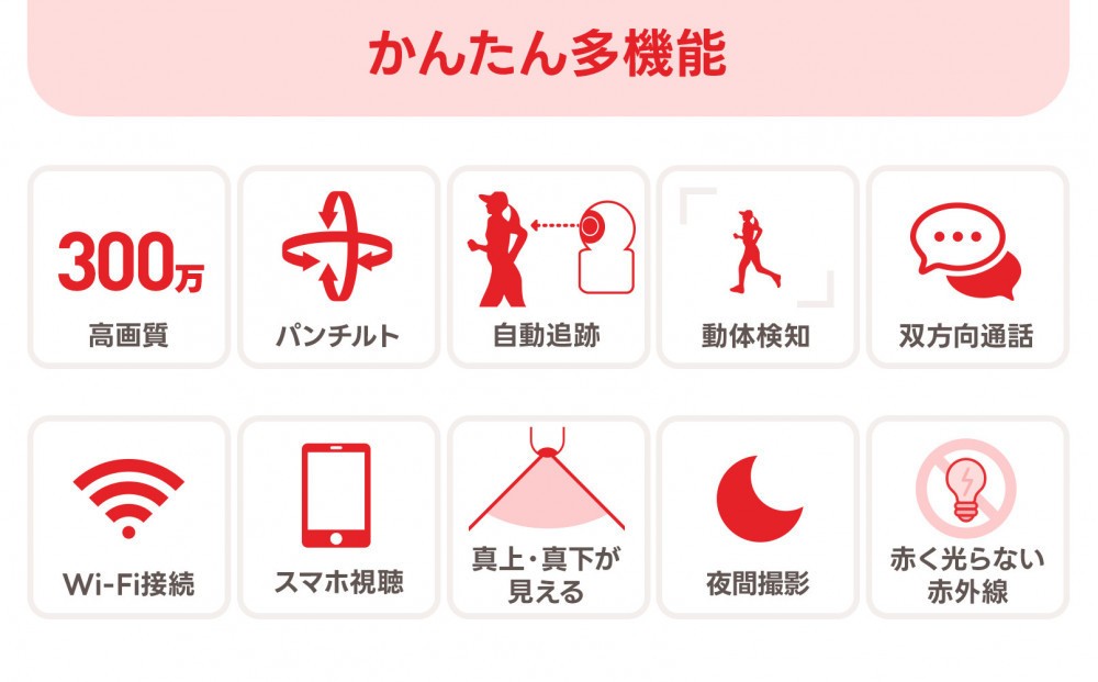 ●スピーカー・マイクを搭載しており、映像データに音声記録することができる他、スマホを使用してカメラから声を出すことも可能です。