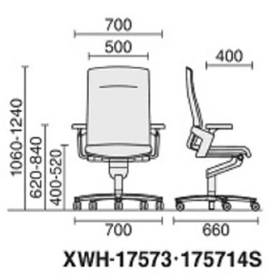 商品サイズ:および主な調整可能箇所:ウィルクハーンチェアー 170レンジ オン