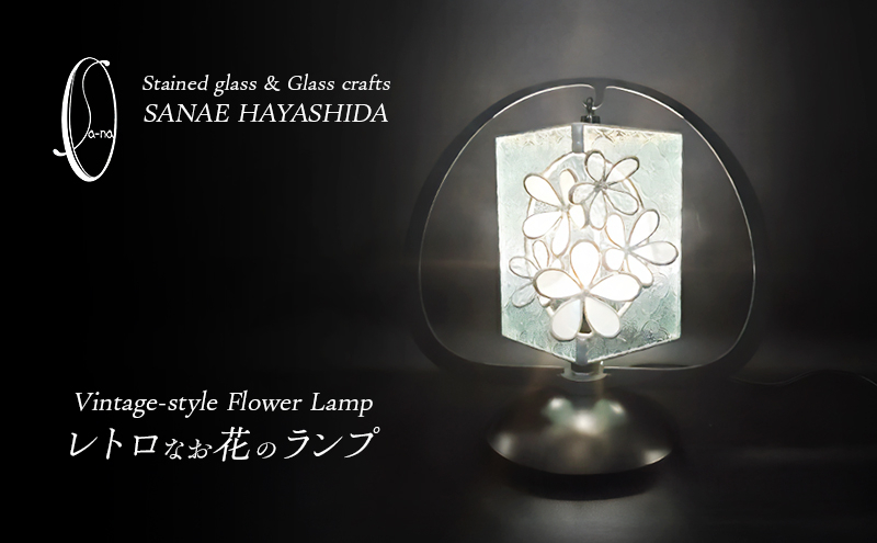 【ステンドグラス】レトロなお花のランプ (白)