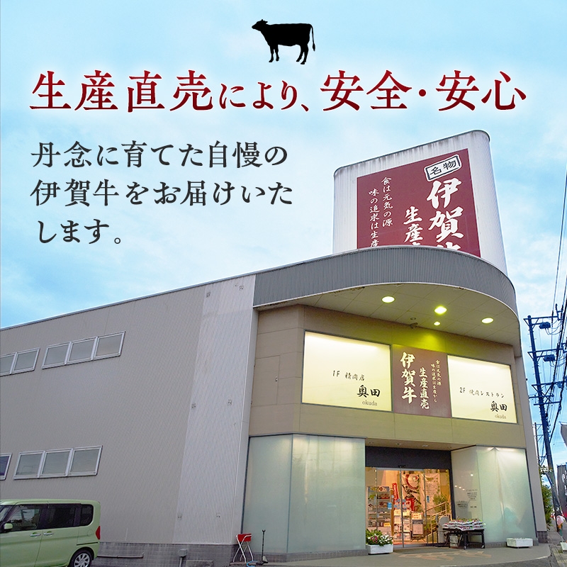 伊賀で長く精肉店を営む奥田では、よりお客様に満足していただけるおいしさをつくり出すために自社牧場で伊賀牛を飼育しています。