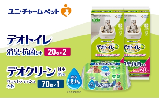 デオトイレ 消臭・抗菌 シート 20枚×2 デオクリーン 純粋99% ウェットティッシュ 本体 70枚×1 ペットシーツ ペットシート トイレ 猫 猫用トイレ ペット 清潔 ユニ・チャーム 愛猫用 ペット用品