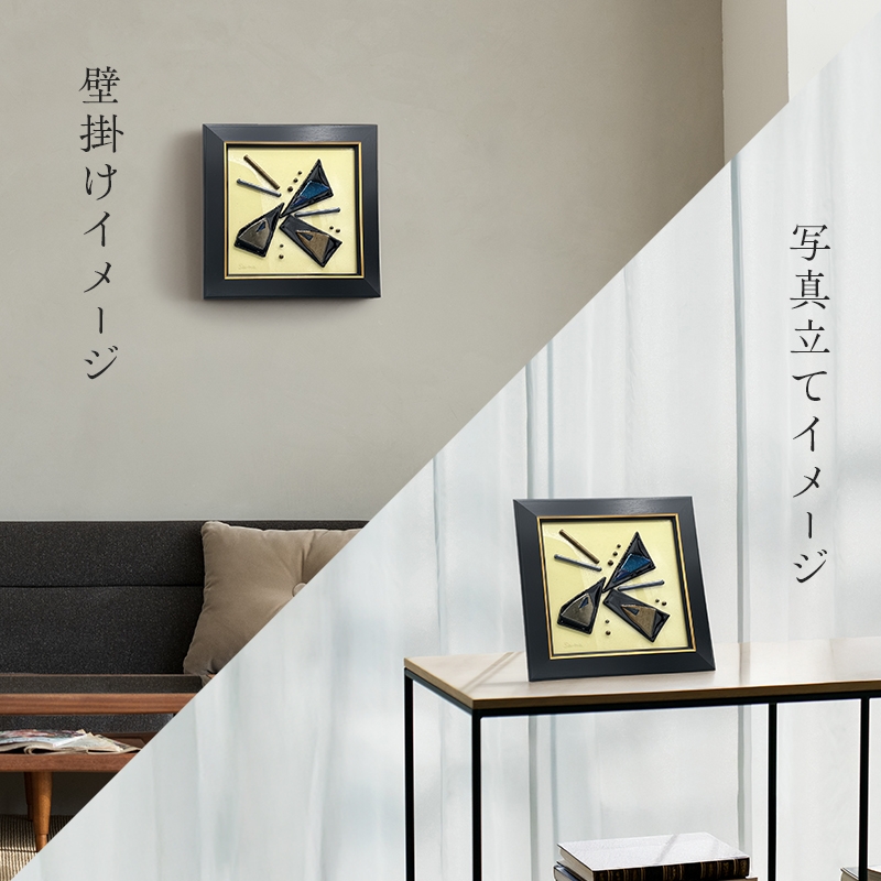 壁に掛けて楽しむのはもちろん、写真立てのように棚にたてて飾ることもできます。