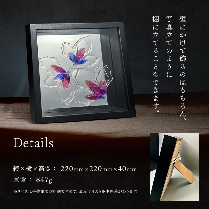 贈り物としても、自宅用としてもおすすめの、光と花のやさしい調和が楽しめるガラスアートです。