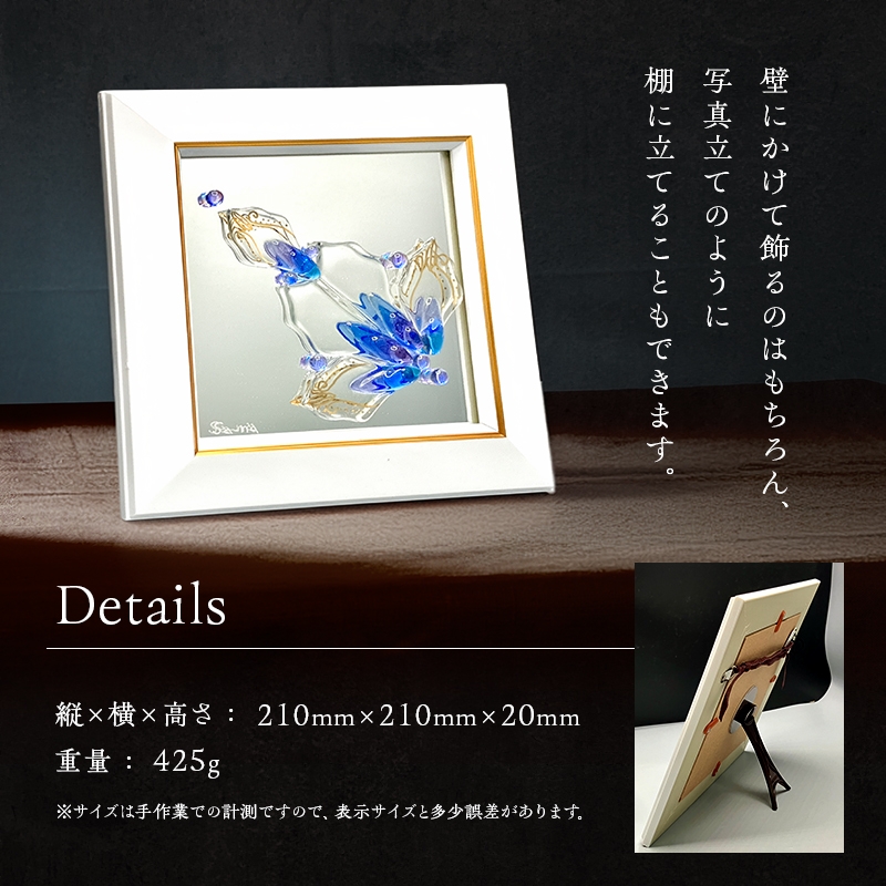 贈り物としても、自宅用としてもおすすめの、光と花のやさしい調和が楽しめるガラスアートです。