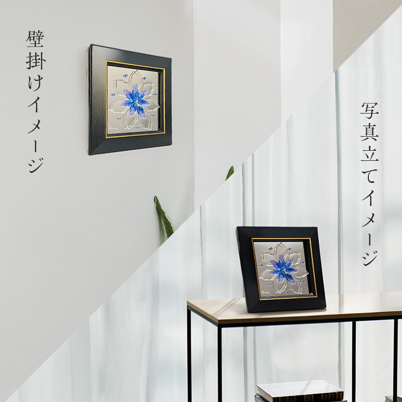 壁にかけて飾るのはもちろん、写真立のように棚に立てることもできます。