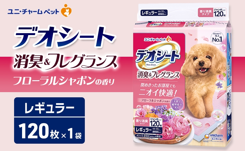 デオシート 消臭&フレグランス フローラルシャボンの香り レギュラー 120枚×1 ペットシーツ ペットシート トイレ 犬 犬用トイレ ペット 清潔 ユニ・チャーム ペット用品