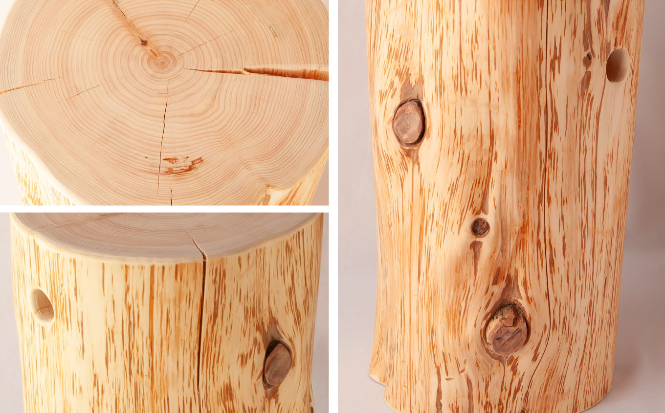 リビング、子ども部屋、またサイドテーブルとしても使える、シーンを選ばないシンプルなデザインと、尾鷲ヒノキの美しい木肌や耐久性が魅力の丸太スツールです。