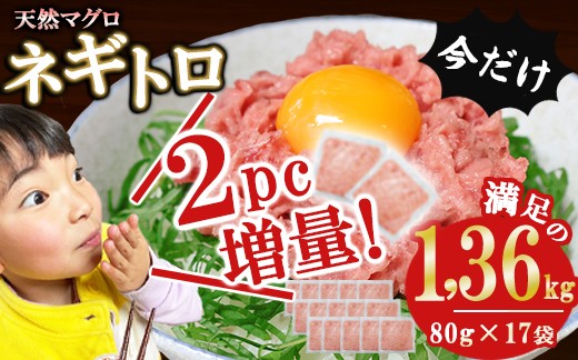 | 容量 | 天然マグロ ネギトロ 1.36㎏ (80g × 17袋) ※今だけ2袋増量中! |