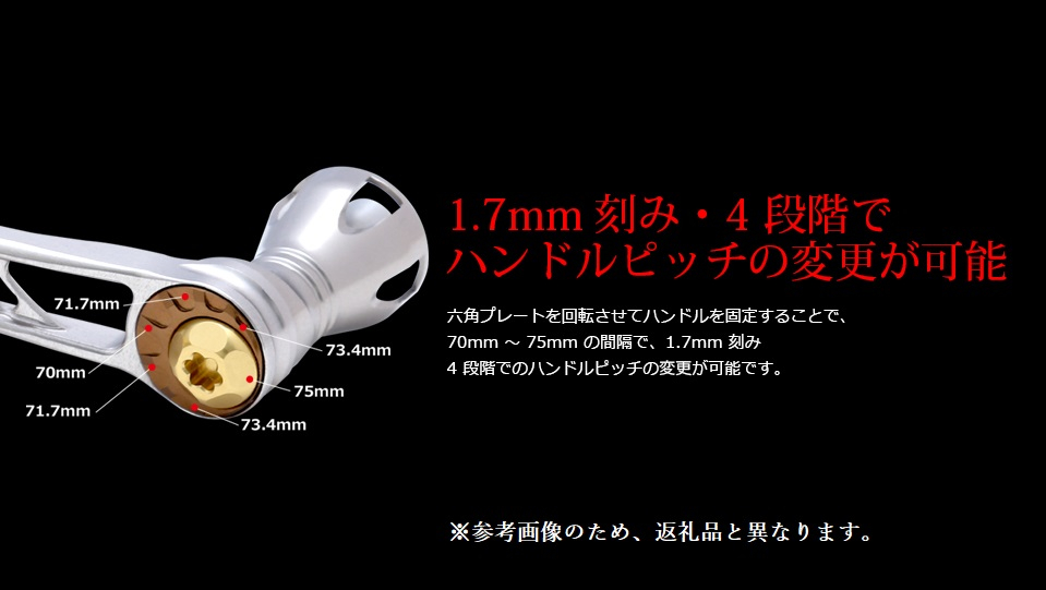 | 容量 | カラーは、ガンメタ×ゴールド、ガンメタ×チタン、チタン×ゴールド、チタン×レッド、ガンメタ×レッド、ガンメタ×ブルー、チタン×ブルーの7種より選択してください。 ※リールは付属されておりません。 ●ピッチ:70〜75mm ●重量:76.5g ●メーカータイプ:シマノSP1 ●リールサイズ:4000〜6000 ●ソルトウォーター対応 【カラーカスタム】 ●メインプレート:ガンメタまたはチタン ●チタンノブ:ファイヤー ●センターナット:ゴールドまたはチタンまたはレッドまたはブルー ●アルミノブカラー:ゴールドまたはチタンまたはレッドまたはブルー ●ノブエンドキャップ:ガンメタまたはチタン ※詳しい適合機種はメーカーHPをご参照ください。 【加工地】 三重県亀山市 |