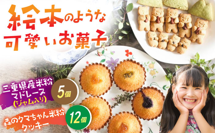 三重県産米粉のマドレーヌ(ジャム入り)と森のクマちゃん米粉クッキー(グルテンフリー) / 洋菓子 焼き菓子 スイーツ おやつ / 亀山市 / くるくる・ベーグル [AMAT009]