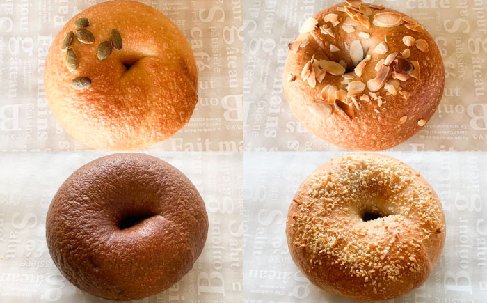 様々な味が楽しめる おまかせセット 【4回定期便】 三重県産小麦使用 自家製天然酵母のおまかせベーグルセット / パン ベーグルパン ベーグル 国産小麦 / 亀山市 / くるくる・ベーグル [AMAT011]