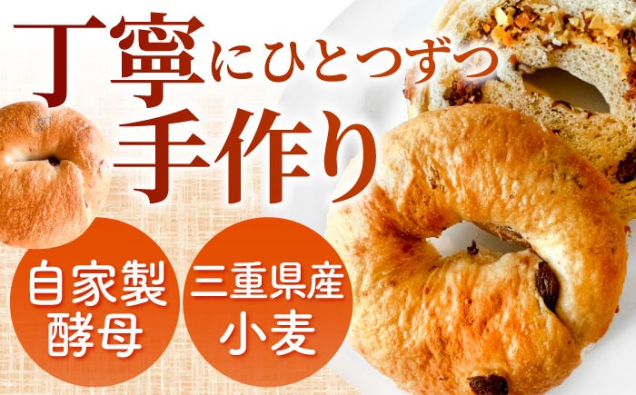 様々な味が楽しめる おまかせセット 【12回定期便】 三重県産小麦使用 自家製天然酵母のおまかせベーグルセット / パン ベーグルパン ベーグル 国産小麦 / 亀山市 / くるくる・ベーグル [AMAT012]