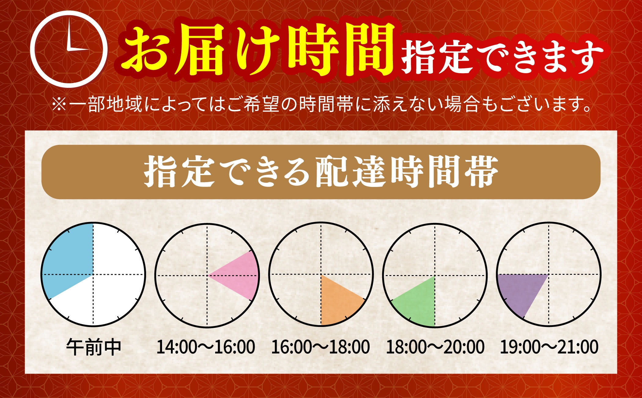 ●お届けの日付指定はお受けしていません。(時間指定は承りますので、時間指定での確実なお受け取りをお勧めしております。)