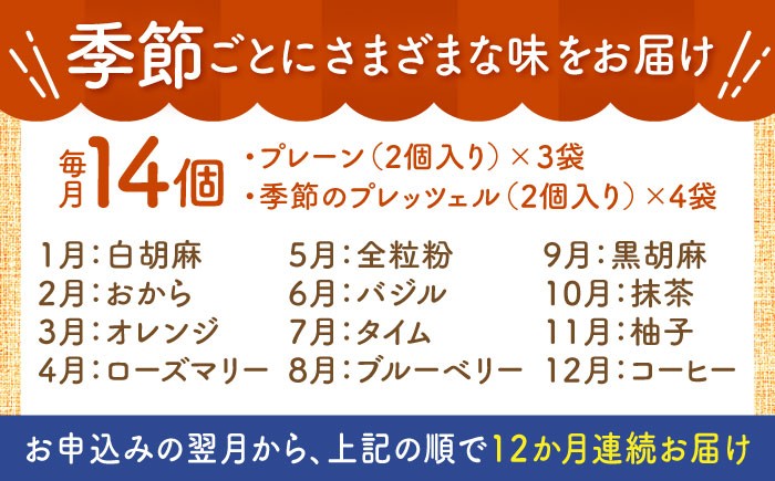 毎月内容が変わる定期便 【12回定期便】 月替わりで楽しむ 米粉入り プレッツェル 亀山市 / くるくる・ベーグル / おやつ 冷凍 定期便 [AMAT020]