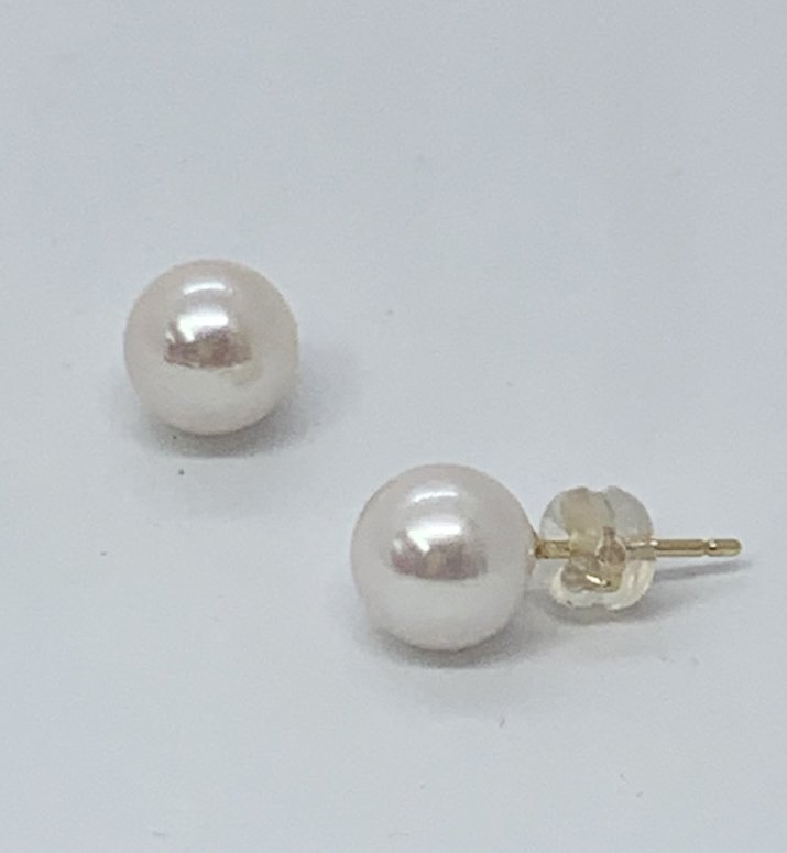 英虞湾で採取されたあこや貝の真珠7.5mm真円ピアス(T P2575)