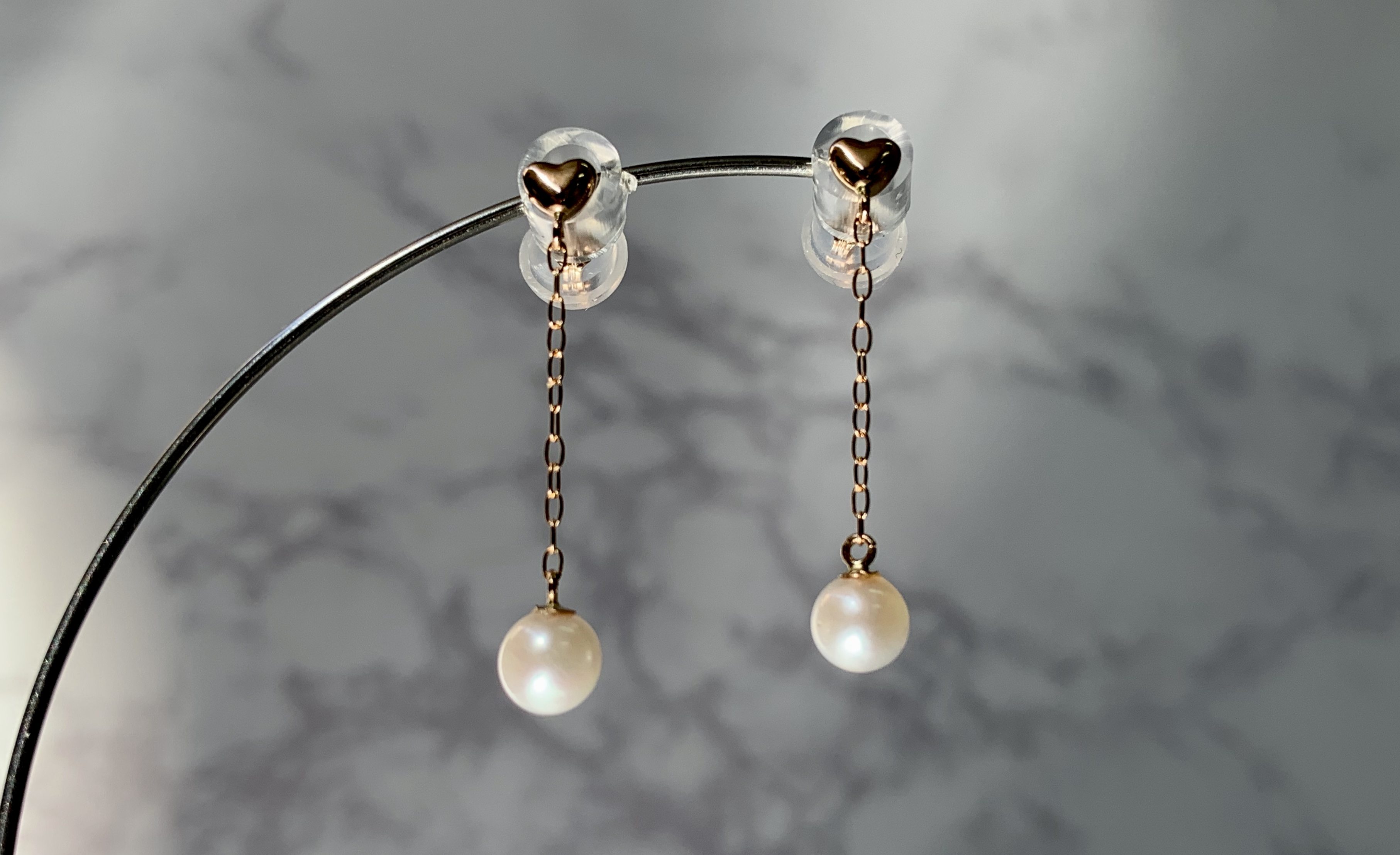真珠専門店が厳選したあこや本真珠のピアスです。 あこや真珠がチェーンにより軽やかにゆれるハート型のデザインが華やかなピアスです。
