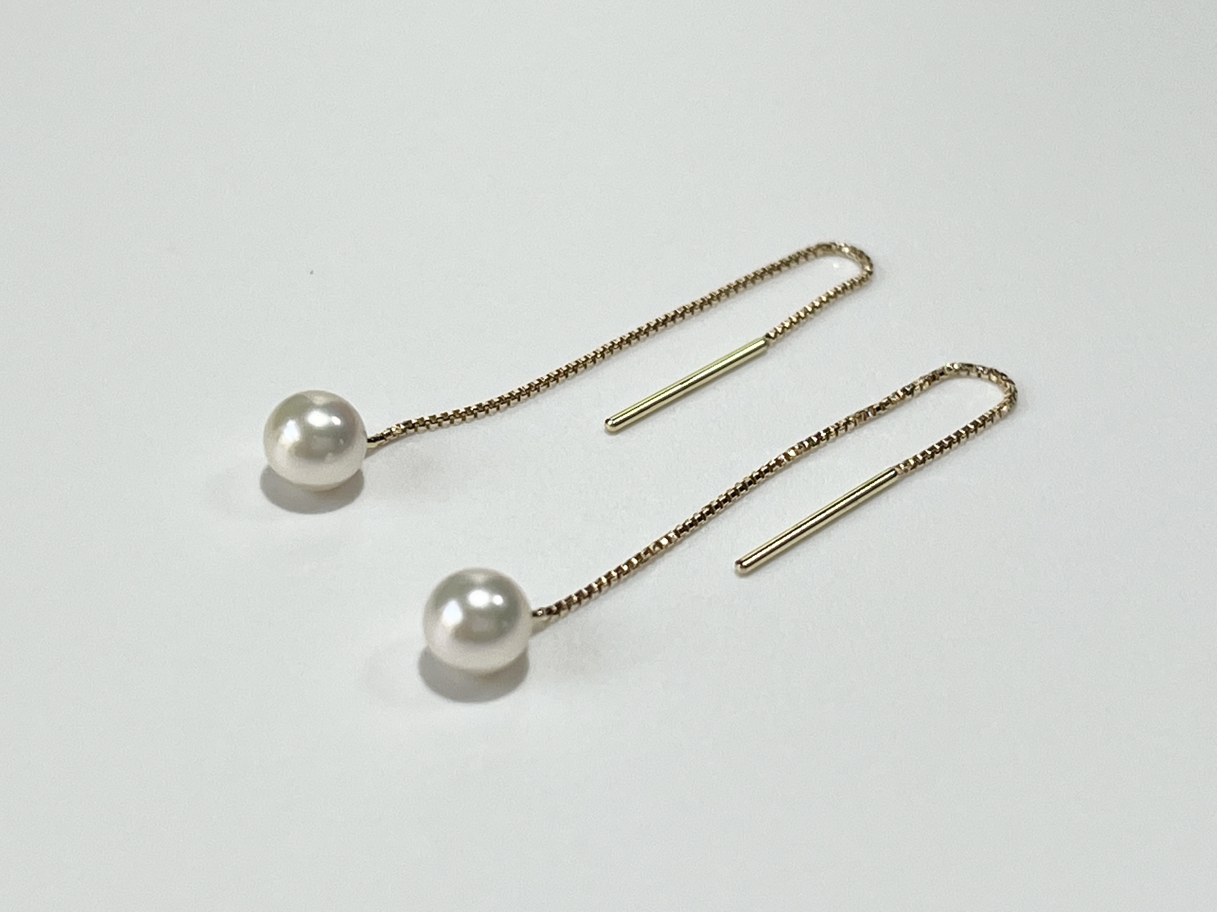 繊細な動きがきれいなピアスです! 60-11アコヤ真珠 チェーンタイプピアス(K18ゴールド)