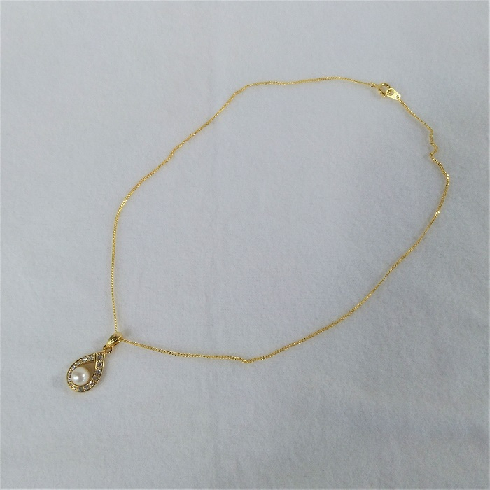 ちょっと目立つ、えくぼやでっぱり、色むら、しわなどがあり、テリも少し弱い、フォーマルネックレスには、使えない真珠たち。でも、養殖業者さんが、我が子のように一生懸命大切に育てた、真珠です。何とか皆さんに、使っていただけたらと思い、ペンダントにいたしました。6.0㎜のラウンドではない真珠です。訳ありの部分が、正面からは、なるべく見えないように、仕上げました。デザイン部分の大きさは、約16㎜×約17㎜です。チェーンの長さは、約40㎝です。ペンダントとチェーンは、真鍮製ですが、変色防止のゴールドメッキ処理が施されています。