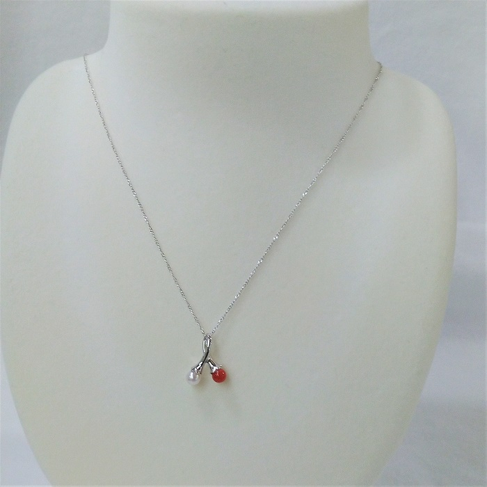 胡渡珊瑚とあこや本真珠が、エレガントなシルバー製ペンダントです。 20-57伊勢志摩あこや本真珠ペンダントツイン(胡渡珊瑚・真珠)